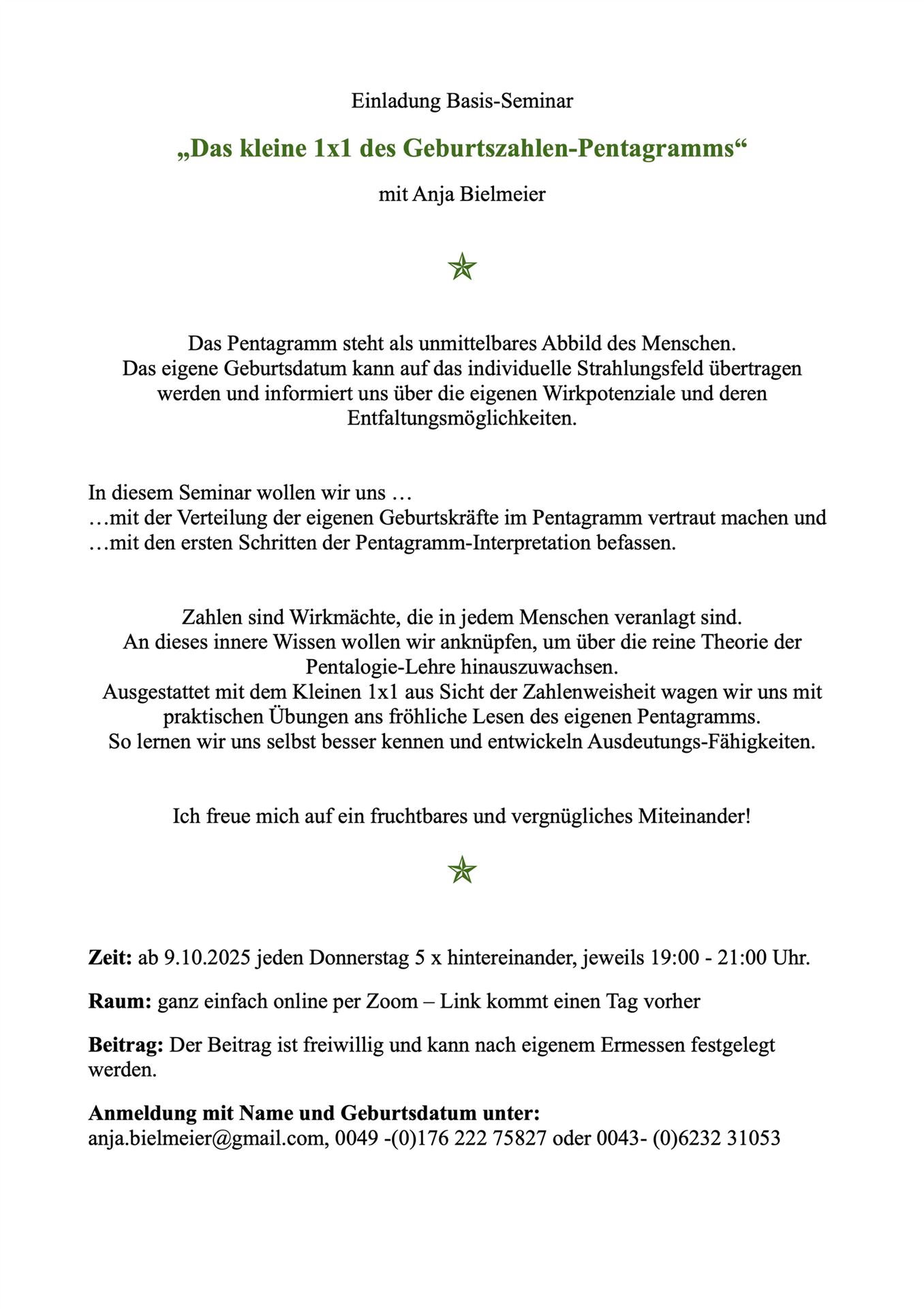 Anmeldung unter: anja.bielmeier@gmail.com