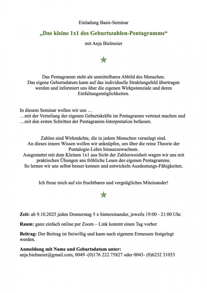 "Das kleine 1x1 des Geburtszahlen-Pentagramms"